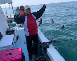 ■黒メバル(錘60号)→根周五目(錘50号)¥9000 青イソメ付き 人数少ない時は竿2本出しでもOKです。船長に確認してみてください。