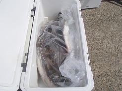 今週からヒラメの餌が変わります。 イワシ15p前後、サバ、アジ20p前後の大きさになります。 配った方によっては、イワシ、サバ、アジの割合が異なりますのでご理解下さい。 |