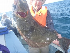 本日は大きい餌が多かったので、 平均60pクラスのヒラメがメインに 70p〜80pクラスの良型、大型多数混じりました。 |