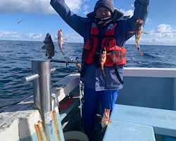 ■黒メバル(錘60号)→根周五目(錘50号)¥9000 青イソメ付き